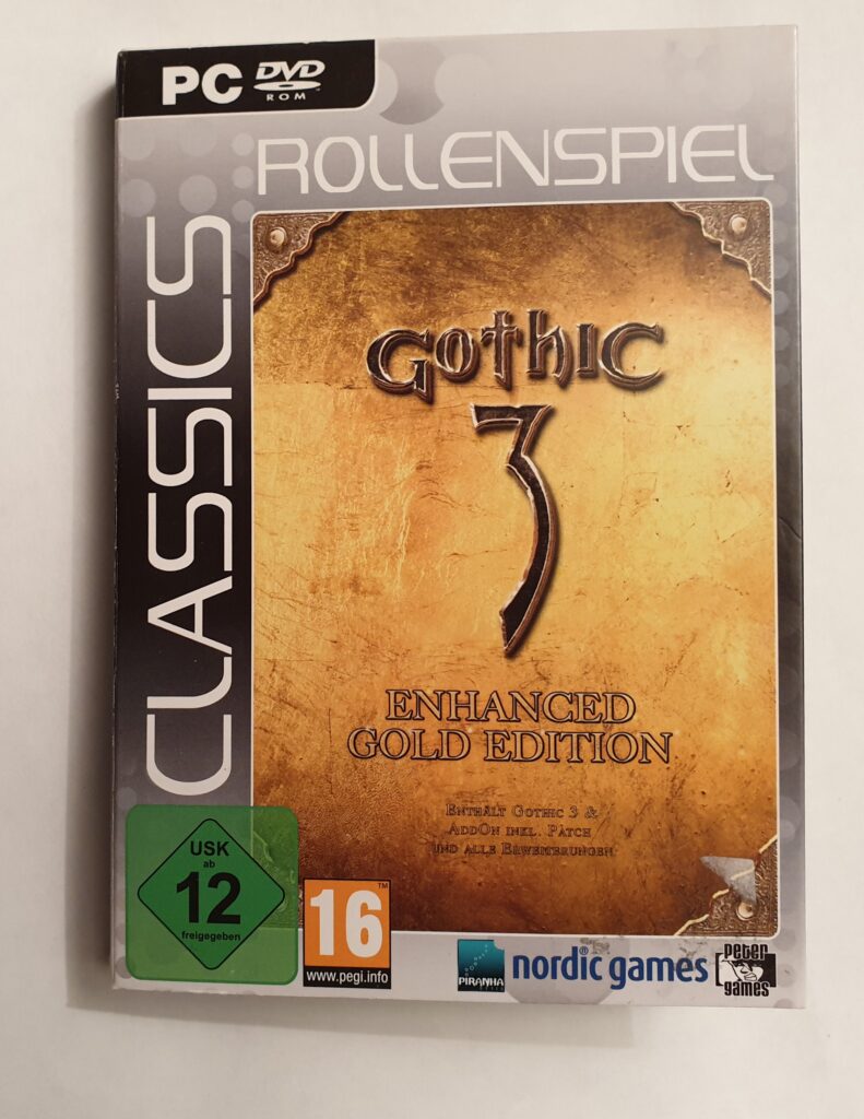 – Gothic 3 Gold DVD in DVD Hülle im Rollenspiel Classics Pappschuber mit Klappcover (ebenfalls enthalten das Handbuch als PDF)