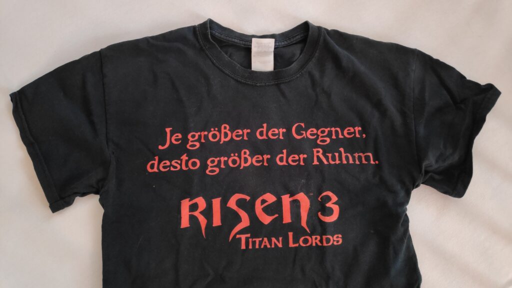 Das Risen 3 Promo Shirt wurde zum Release an Mitarbeiter der Media-Saturn-Holding in ausgewählten Märkten (Media Markt & Saturn) übergeben.